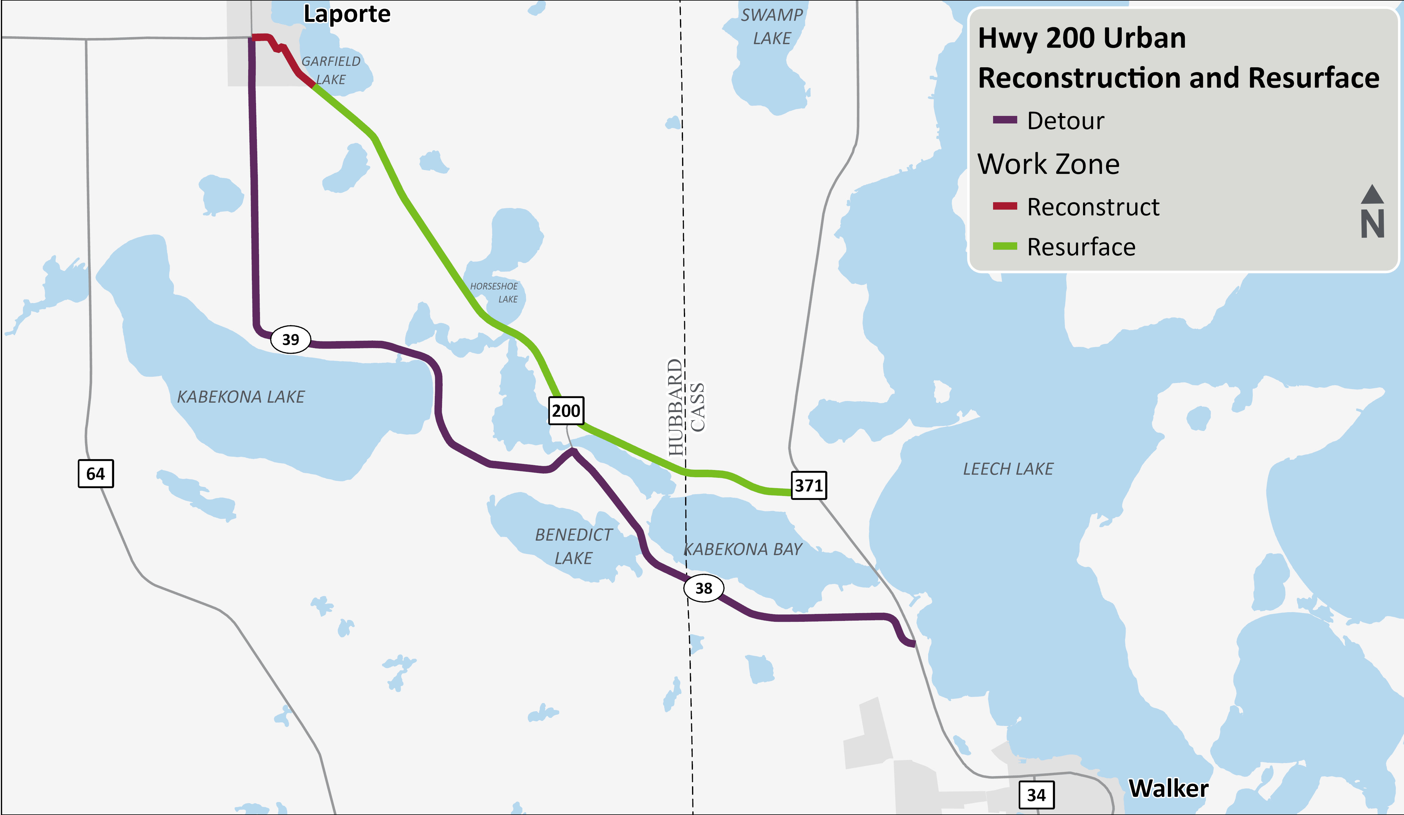 The Minnesota Department of Transportation will be constructing a project on Highway 200 from Hubbard County Road 39 to Highway 371. The project is planned for construction in 2027. The project will include the installation of new storm sewer, sidewalk, and curb and gutter in the city limits of Laporte. Once completed the pavement throughout the project limits will have been resurfaced or entirely replaced.