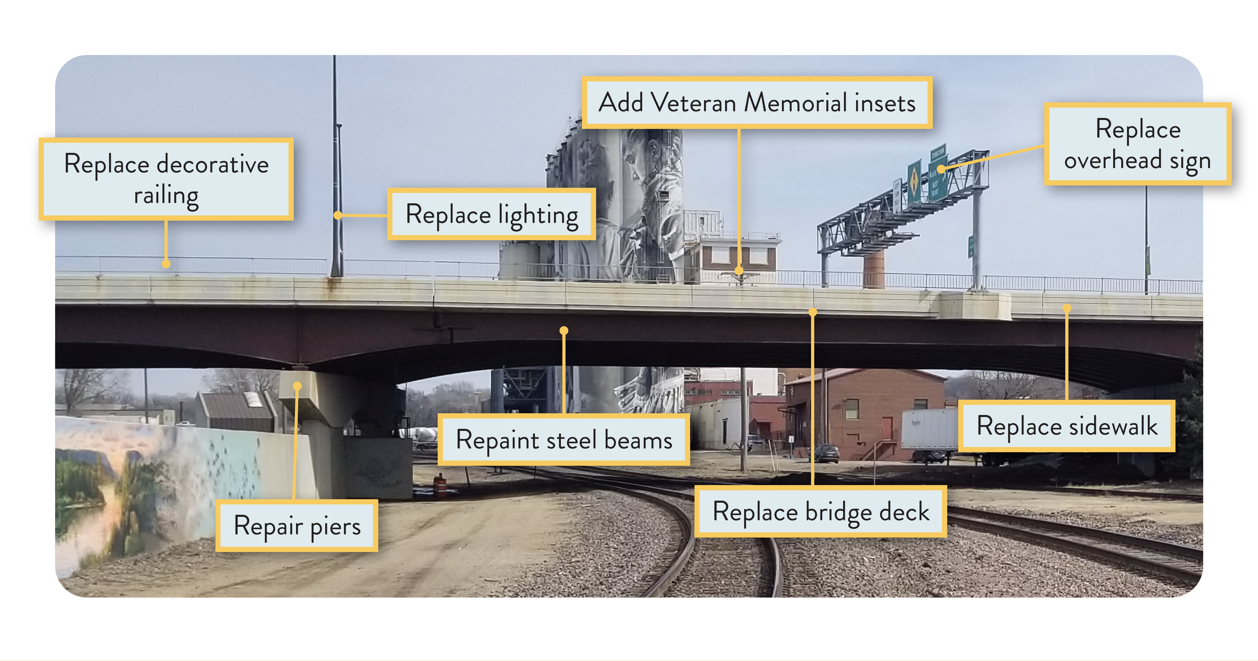 Veteran's Memorial Bridge features and improvements. Click to view larger image.