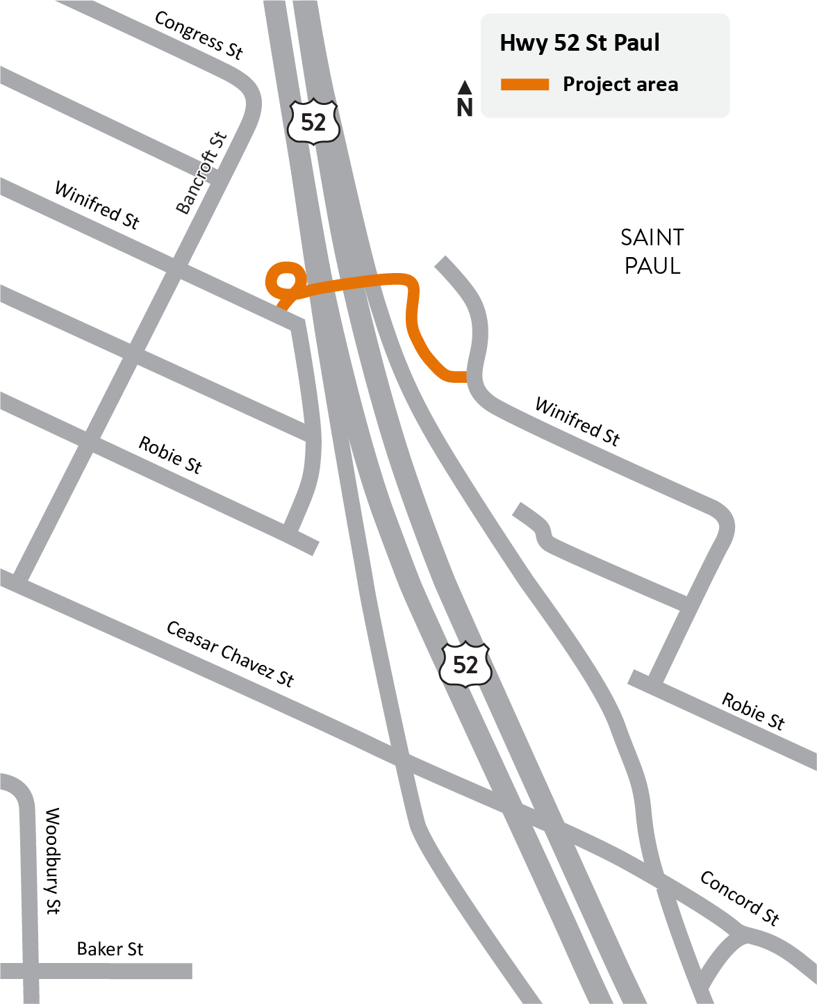 - Removed the damaged eastern end of the bridge over northbound Hwy 52 and rebuilt a new section that matched the existing structure and repainted the bridge