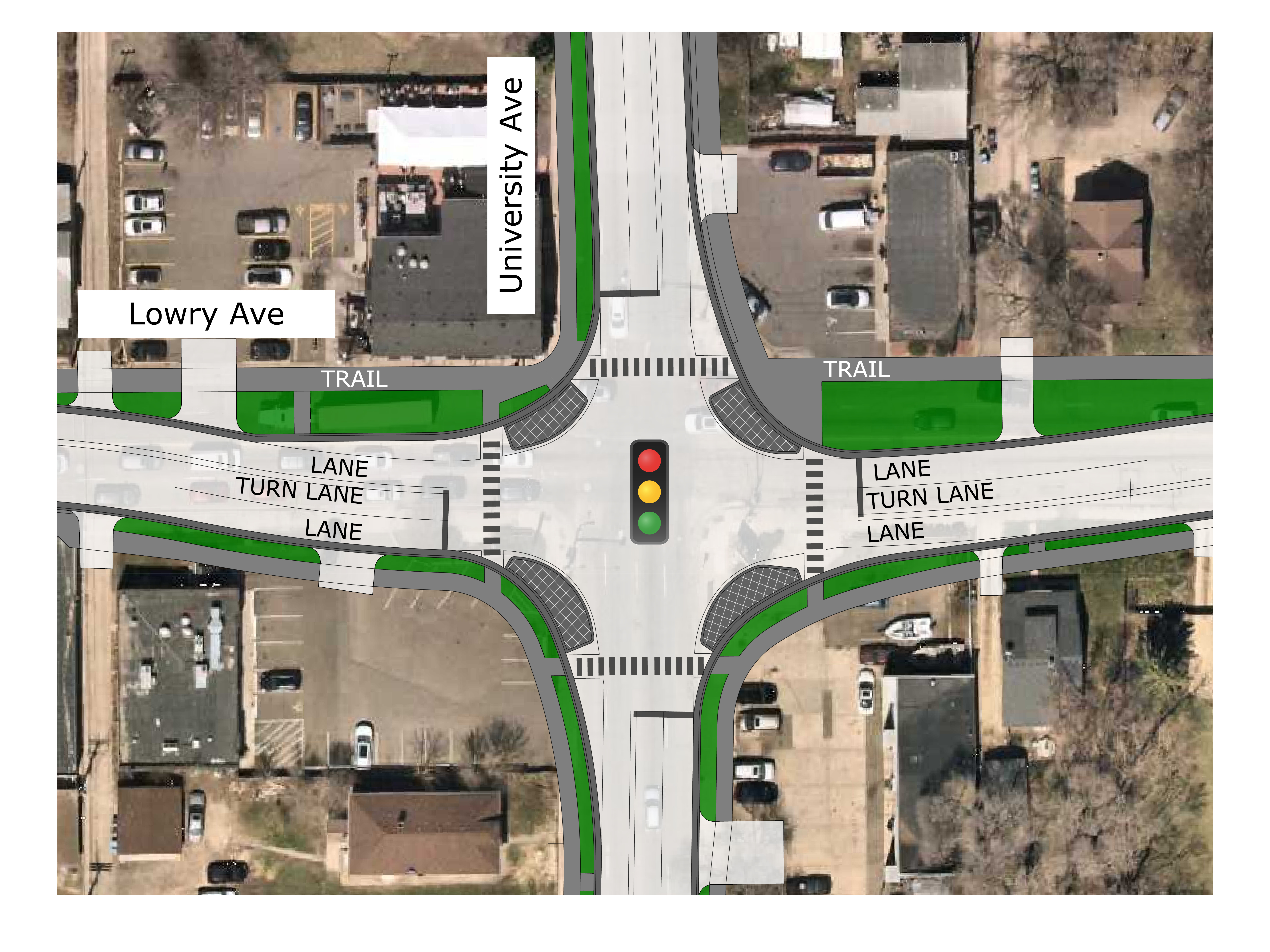 • Provides the most direct connection across University Ave. for the trail or Shared Use Path on Lowry Ave.
